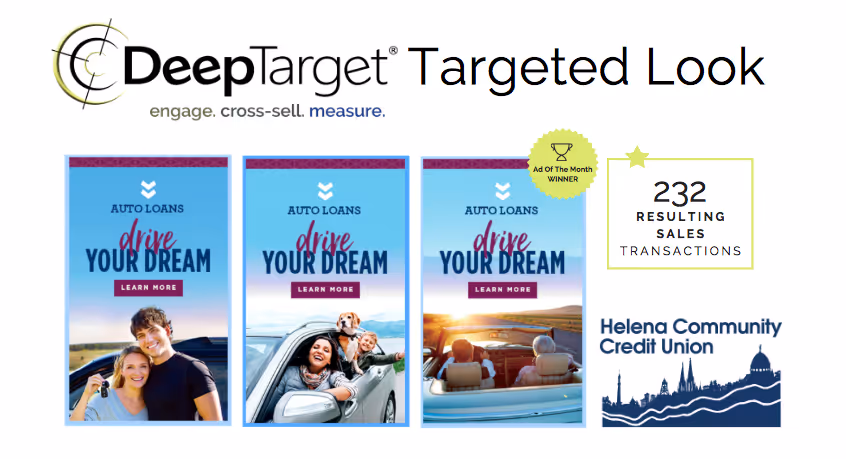 These campaigns were powered by DeepTarget OLB and Mobile. Industry-leading DeepTarget OLB delivers personalized, targeted offers through online banking platforms. DeepTarget Mobile offers targeted banner ad messaging and personalized offers to smartphone users.