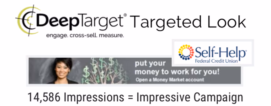 These campaigns were powered by DeepTarget OLB and Mobile. Industry-leading DeepTarget OLB delivers personalized, targeted offers through online banking platforms, and DeepTarget Mobile offers targeted banner ad messaging and personalized offers to smartphone users.