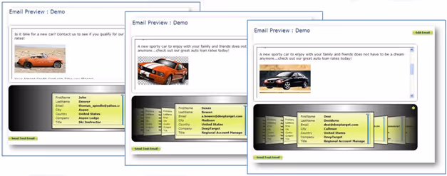 DeepTarget Email takes the focus on targeting and personalization into the realm of email marketing. Unique for its rich user experience, particularly in using rules to individually target email recipients with applicable images and messages, DeepTarget Email takes the complexity out of creating personalized, relevant and therefore, highly effective, emails.