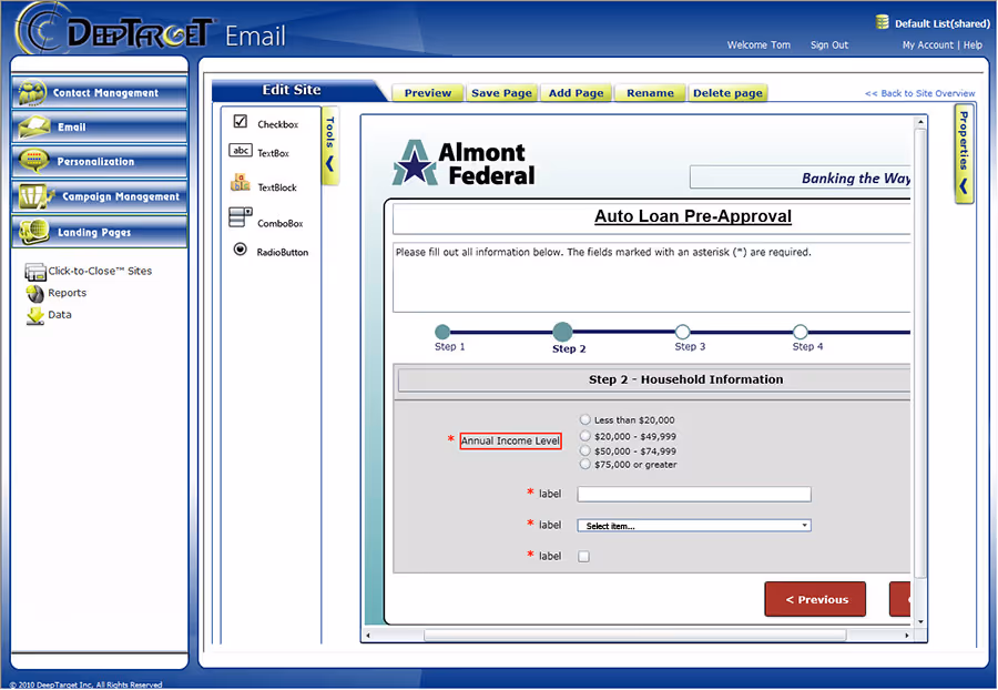 New Click-to-Close™ landing pages in DeepTarget Email give financial institutions the freedom and flexibility to effortlessly capture leads online and transact sales, 24/7