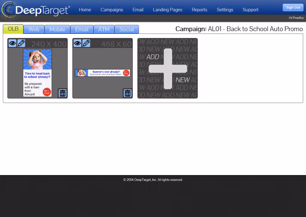 Deep Target’s flagship product, DeepTarget OLB takes advantage of precious digital real estate within online banking for cross-selling and communicating with account holders. It is a secure, hosted online advertising solution built on a one-to-one, multi-channel offer management platform. DeepTarget OLB presents highly targeted and personalized offers to a bank’s customers within various online banking platforms.