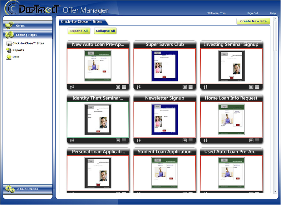 New Click-to-Close™ landing pages in DeepTarget OLB give financial institutions the freedom and flexibility to effortlessly capture leads online and transact sales, 24/7