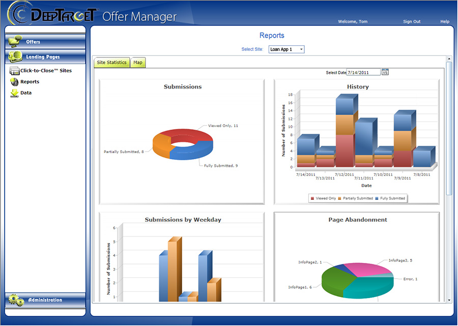 Huntsville, AL, July 20, 2011 – DeepTarget Inc. (www.deeptarget.com) today announced that it has released a significant new upgrade to its DeepTarget OLB product, providing users an effortless and affordable capability to create landing pages. With these enhanced features to DeepTarget’s Click-to-Close™ Sites, DeepTarget clients can create their own micro websites (“micro-sites”) simply and affordably in order to increase online lead capture rates. These new capabilities are available, at no extra cost, to all current and future DeepTarget OLB clients.