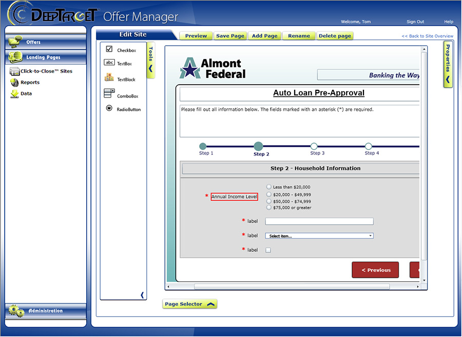 New Click-to-Close™ landing pages in DeepTarget OLB give financial institutions the freedom and flexibility to effortlessly capture leads online and transact sales, 24/7